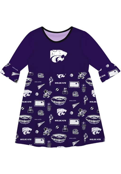Support for your favorite team in this Toddler Purple K-State Wildcats Impressions Long Sleeve Dress! This Dress features a hand sketched artwork perfect to keep the new fan cheering for your favorite team, so everyone will know your favorite team is the K-State Wildcats! This is the perfect K-State Wildcats Toddler Dress for wearing to game day or everyday. Fear The Cats!