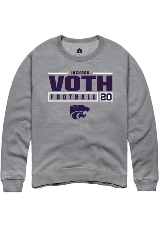 Support your K-State Wildcats and favorite Jackson Voth in this K-State Wildcats Mens Graphite NIL Stacked Box Player Crew. This Crew Sweatshirt features a custom graphic with player's name and number, and is sure to stand out in the stadium. Perfect to wear on game day or any day!