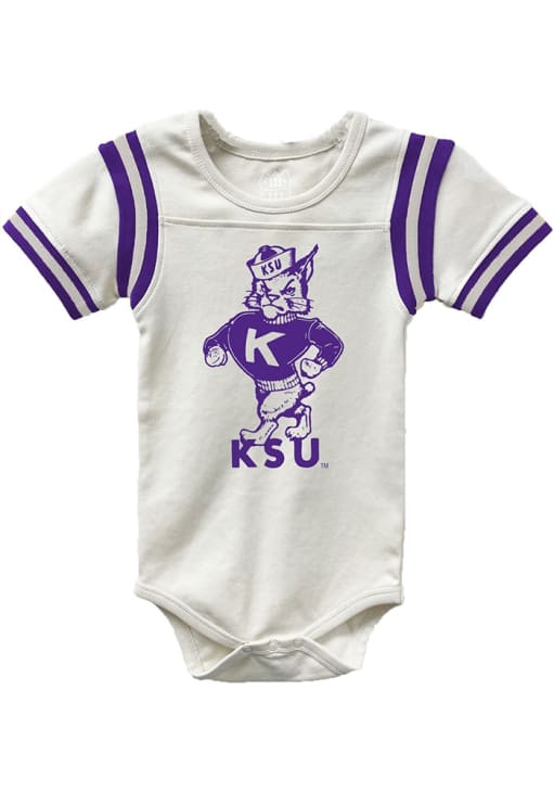 Your little Wildcats fan will look adorable in this Baby White K-State Wildcats Vault Raglan One Piece! This K-State Wildcats Romper features a screen print team graphic.