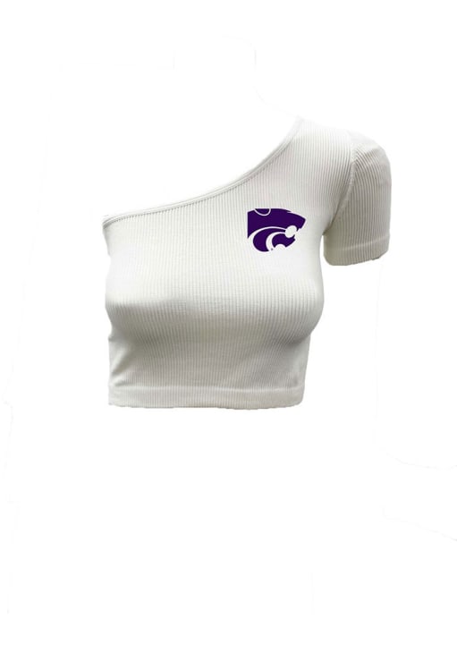 Display your team spirit with this remarkable K-State Wildcats White Cropped One Shoulder Short Sleeve T-Shirt! The K-State Wildcats Short Sleeve Tee showcases a screen print team logo on left chest that truly sets it apart. Stand out from the crowd and proudly declare your allegiance to the Wildcats with this exceptional White K-State Wildcats T-Shirt. Fear The Cats!