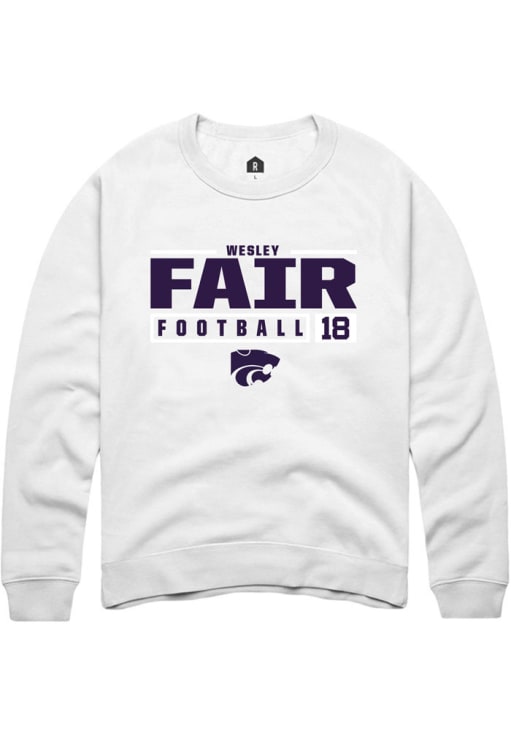 Wesley Fair Rally Mens White K-State Wildcats NIL Stacked Box Crew Sweatshirt