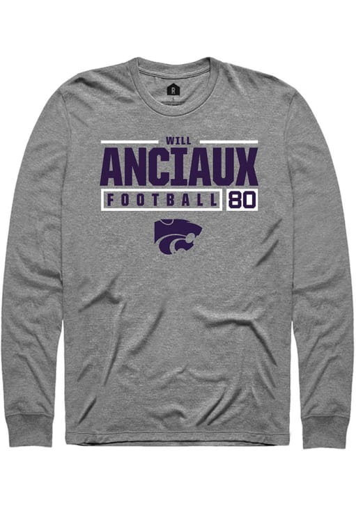 Will Anciaux Rally Mens Graphite K-State Wildcats NIL Stacked Box Tee
