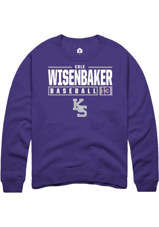 Cole Wisenbaker Rally Mens Purple K-State Wildcats NIL Stacked Box Crew Sweatshirt