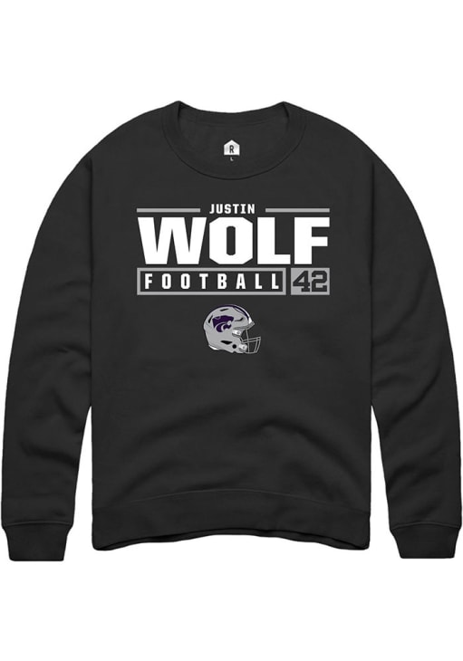 Justin Wolf Rally Mens Black K-State Wildcats NIL Stacked Box Crew Sweatshirt