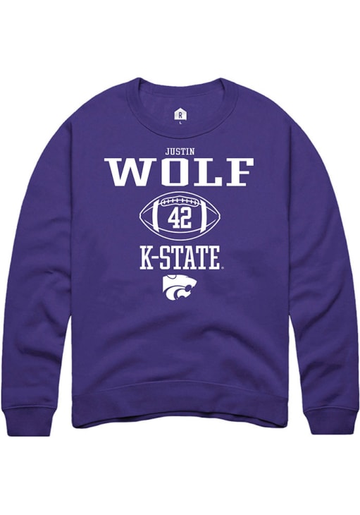 Justin Wolf Rally Mens Purple K-State Wildcats NIL Sport Icon Crew Sweatshirt