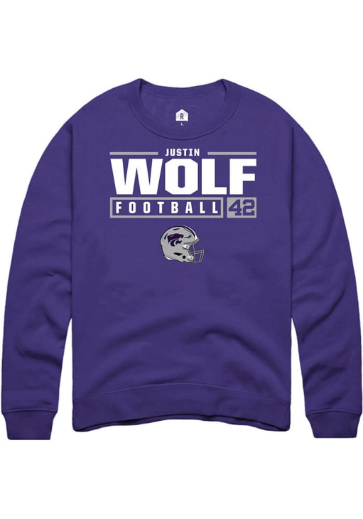 Justin Wolf Rally Mens Purple K-State Wildcats NIL Stacked Box Crew Sweatshirt