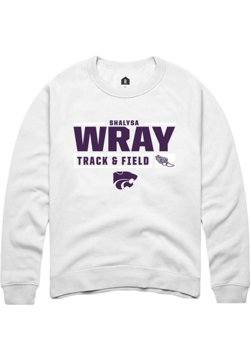 Shalysa Wray Rally Mens White K-State Wildcats NIL Stacked Box Crew Sweatshirt