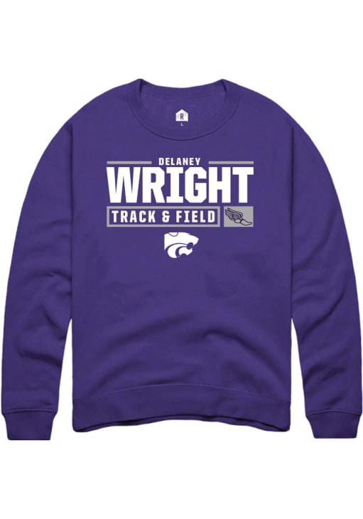 Delaney Wright Rally Mens Purple K-State Wildcats NIL Stacked Box Crew Sweatshirt