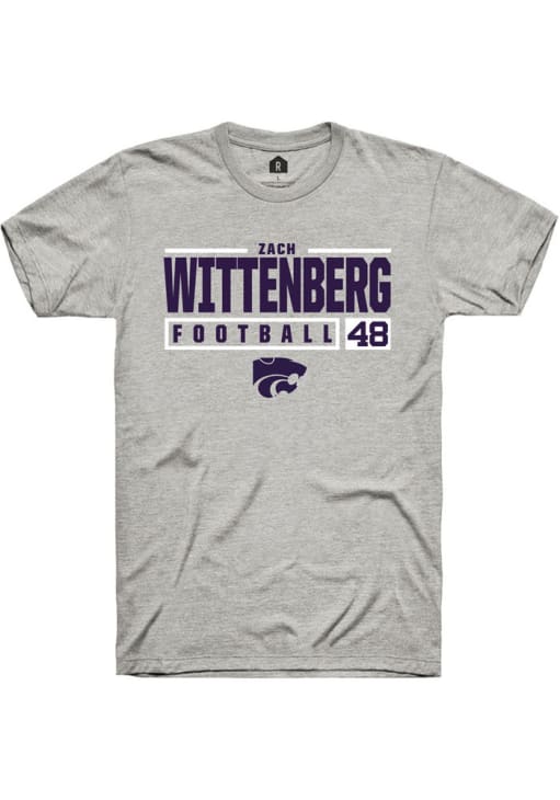 Zach Wittenberg Ash K-State Wildcats NIL Stacked Box Short Sleeve T Shirt