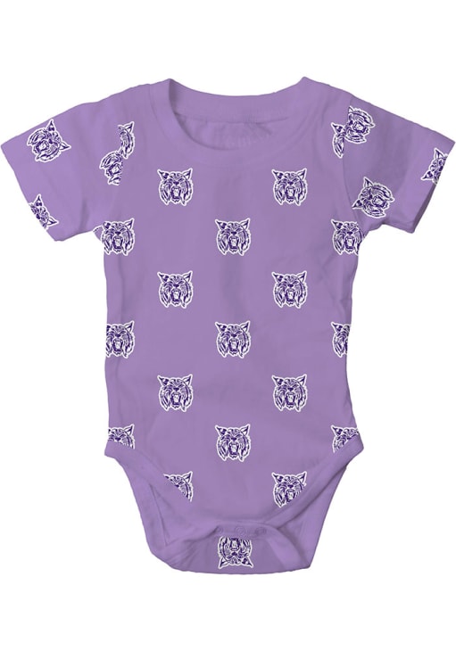 Your little Wildcats fan will look adorable in this Baby Lavender K-State Wildcats All Over Print Ratty Cat One Piece! This K-State Wildcats Romper features a screen print team graphic.