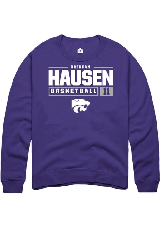 Brendan Hausen Rally Mens Purple K-State Wildcats NIL Stacked Box Crew Sweatshirt
