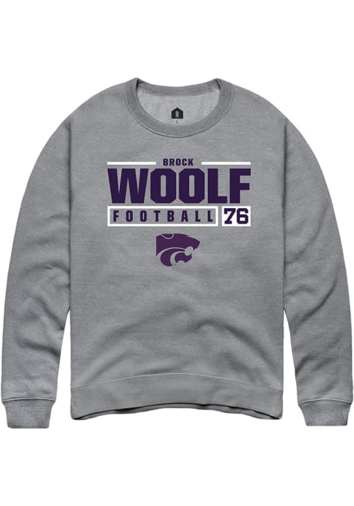 Brock Woolf Rally Mens Graphite K-State Wildcats NIL Stacked Box Crew Sweatshirt