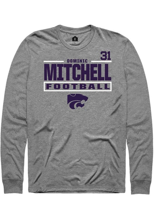 Dominic Mitchell Mens Graphite K-State Wildcats Football NIL Stacked Box Long Sleeve Player T Shir..
