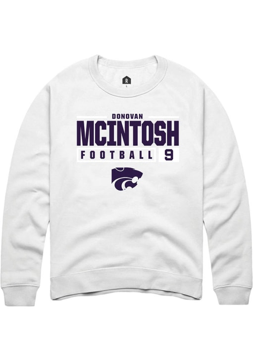 Donovan McIntosh Rally Mens White K-State Wildcats NIL Stacked Box Crew Sweatshirt
