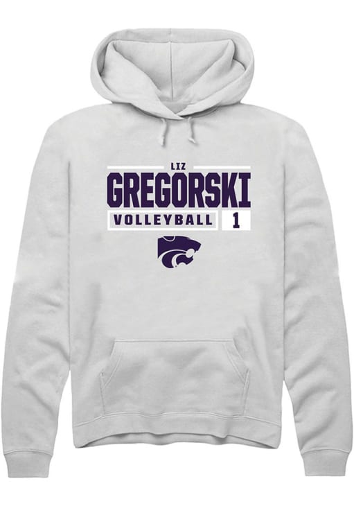 Elizabeth Gregorski Rally Mens White K-State Wildcats NIL Stacked Box Hooded Sweatshirt