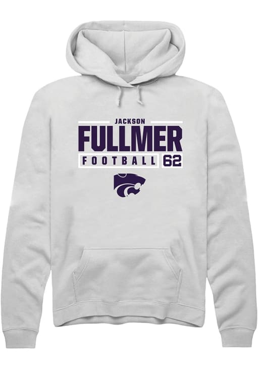 Jackson Fullmer Rally Mens White K-State Wildcats NIL Stacked Box Hooded Sweatshirt
