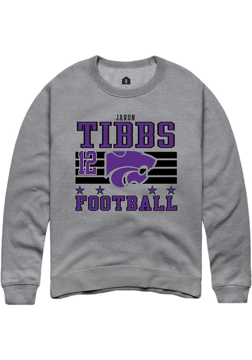 Gear up for the ultimate game day experience with this remarkable K-State WildcatsMens Grey Football NIL Striped Crew Sweatshirt! Designed with the true fan in mind, this Wildcats Long Sleeve Crew Sweatshirt features a custom graphic with player's name and number. Stay warm and comfortable with this Mens K-State Wildcats Wildcats Crew Sweatshirt.