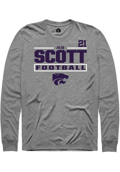 Embrace the spirit of your favorite player in this K-State Wildcats Graphite Football NIL Stacked Box jojo scott Long Sleeve Player Tee! This Player T Shirt features a NIL graphic, so everyone will know you cheer for K-State Wildcats, jojo scott! This is the perfect Wildcats Player Tee for game days. Fear The Cats!
