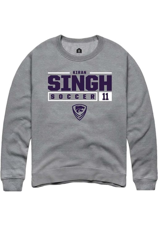 Kiran Singh Rally Mens Graphite K-State Wildcats NIL Stacked Box Crew Sweatshirt