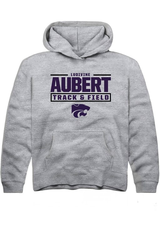 Ludivine Aubert Rally Youth Grey K-State Wildcats NIL Stacked Box Long Sleeve Player Hoodie