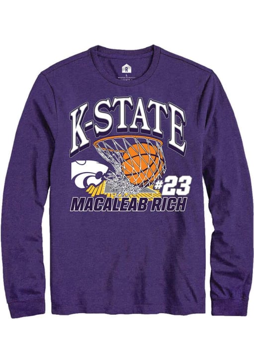 Macaleab Rich Rally Mens Purple K-State Wildcats NIL Name Number Net Tee