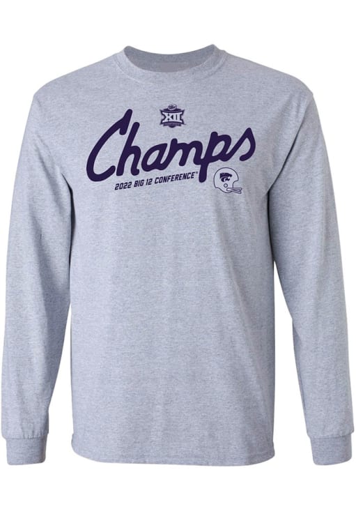 Show your K-State Wildcats spirit in this K-State Wildcats Grey T Shirt! This K-State Wildcats 2022 Big 12 Football Champions Long Sleeve T Shirt makes a great layer for cooler nights cheering on the Wildcats. Featuring a screen print Kansas State Football Big 12 Champions graphic on front chest, this K-State Wildcats Long Sleeve Tee is an essential addition for every fan. Fear The Cats!