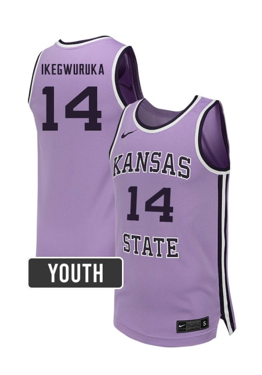 Size Chart for Mobi Ikegwuruka Nike Youth Lavender K-State Wildcats NIL Name And Number Basketball Jersey Jersey