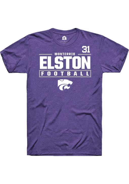 Monterrio Elston Purple K-State Wildcats Football NIL Stacked Box Short Sleeve T Shirt