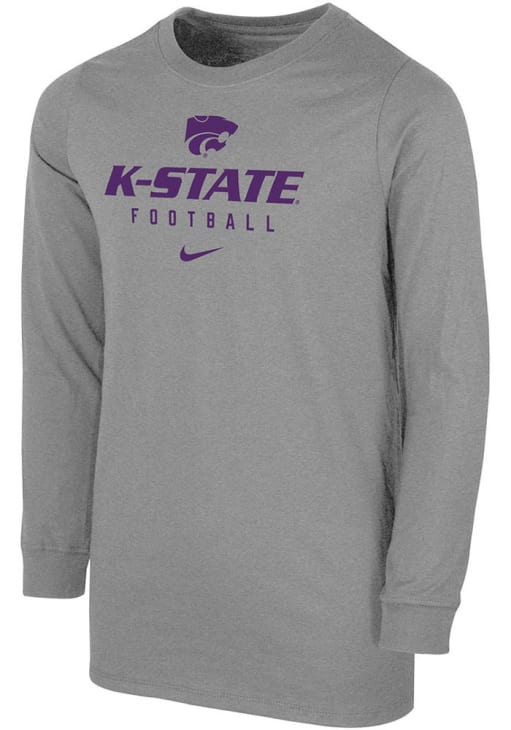 Size Chart for Youth K-State Wildcats Grey Nike Team Issue Football Long Sleeve T-Shirt