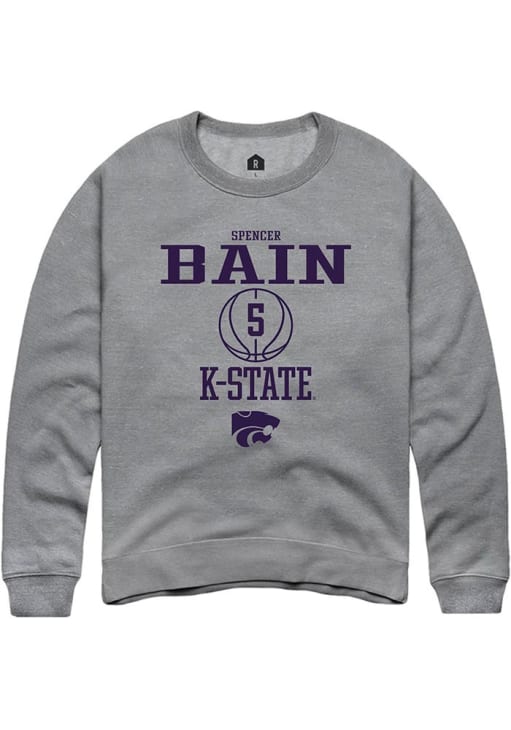 Spencer Bain Rally Mens Graphite K-State Wildcats NIL Sport Icon Crew Sweatshirt