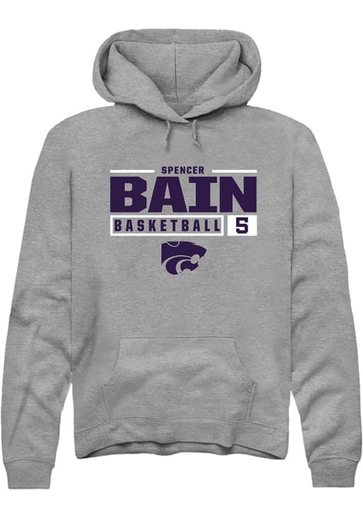 Spencer Bain Rally Mens Graphite K-State Wildcats NIL Stacked Box Hooded Sweatshirt