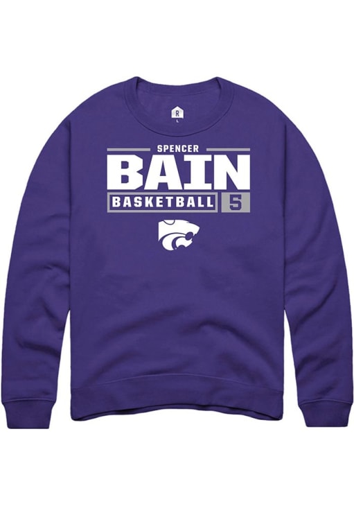 Spencer Bain Rally Mens Purple K-State Wildcats NIL Stacked Box Crew Sweatshirt