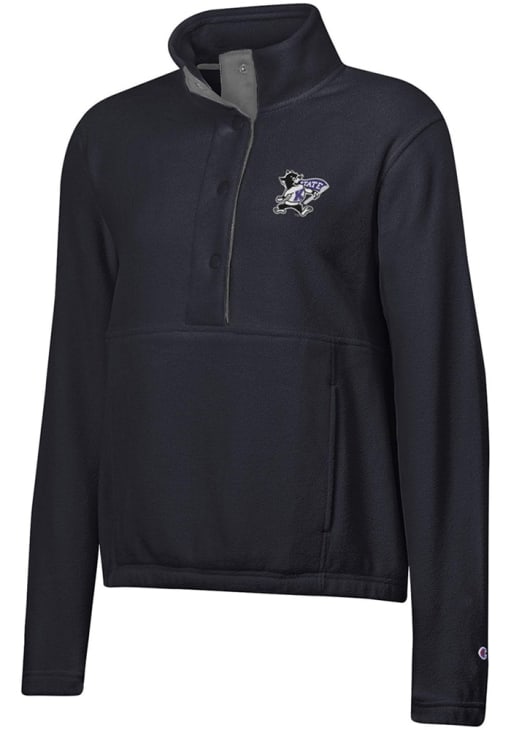 Embrace the warmth and showcase your Wildcats pride with our K-State Wildcats Long Sleeve Qtr Zip. This Womens Black Explorer Long Sleeve Pullover offers a embroidered team logo at left chest for the perfect combination of comfort and style. Elevate your everyday look with this must-have K-State Wildcats Long Sleeve Qtr Zip.