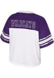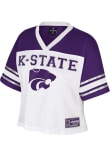 This remarkable K-State Wildcats Womens Treasure Fashion Football Jersey, showcasing a foil screen print team name and logo on center chest and center back. Elevate your admiration for K-State Wildcats as you embrace this exceptional piece, designed to impress.