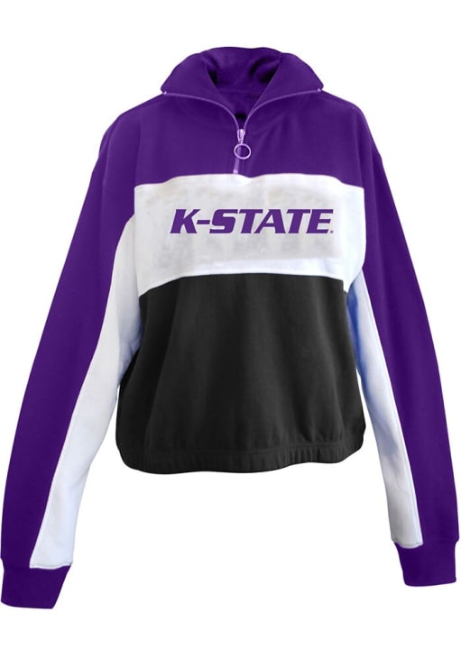 Embrace the warmth and showcase your Wildcats pride with our K-State Wildcats Long Sleeve Qtr Zip. This Womens White Colorblock + Long Sleeve Pullover offers a screen print team name on center panel for the perfect combination of comfort and style. Elevate your everyday look with this must-have K-State Wildcats Long Sleeve Qtr Zip.